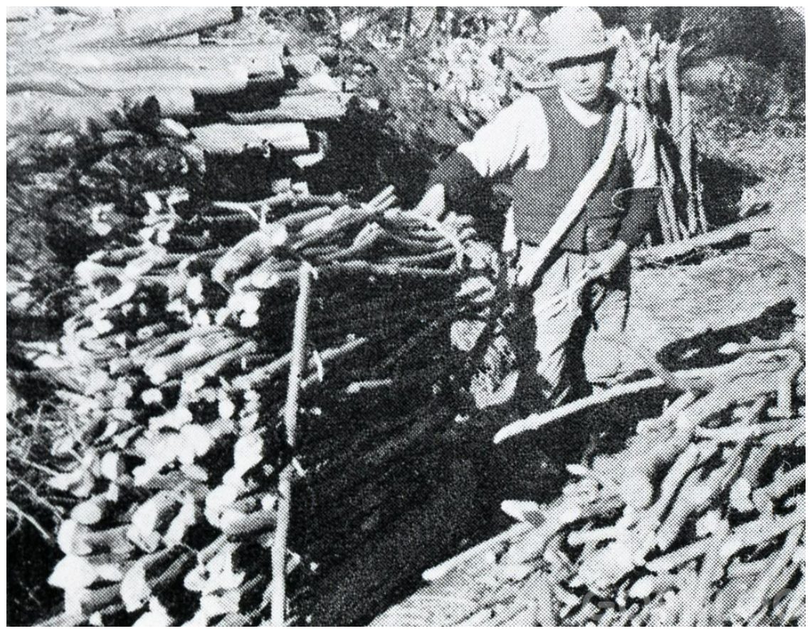 そのため、再植林の必要がありません。また、択伐により残った枝葉が林床に適度な陰をつくるので、過酷な下草刈りの手間も低減されます。伐採を繰り返すことで同じ株からどんどん幹の数が増え、1株から10本以上の幹が育つ「多幹化」が進み、やればやるほど一株あたりの収量が増えていきます。